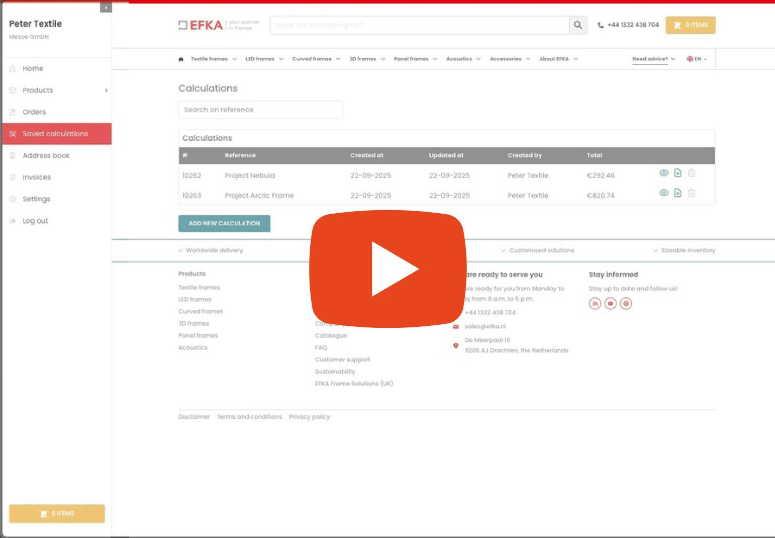 Configuring and ordering textile frames should be straightforward, and efficiency is key. Especially when managing multiple projects, it is a real advantage not having to repeat the same calculations over and over again.